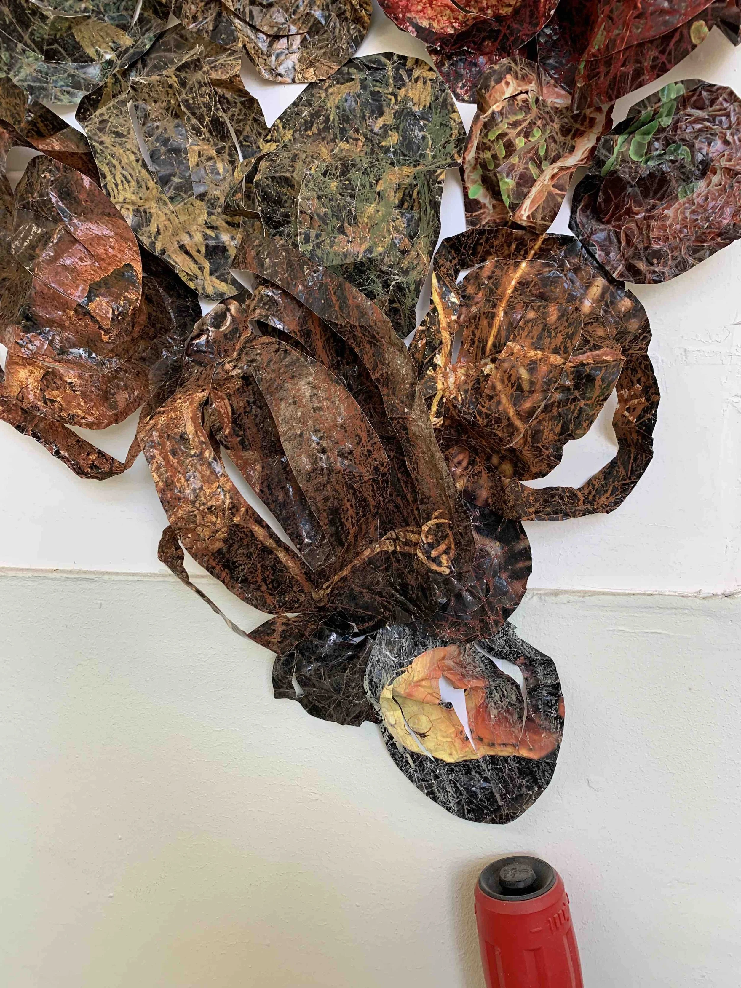 Hose on Fire is a series of site-specific paper collages that bridge sculpture and architecture, exposing the ecological tension between human construction and organic matter.