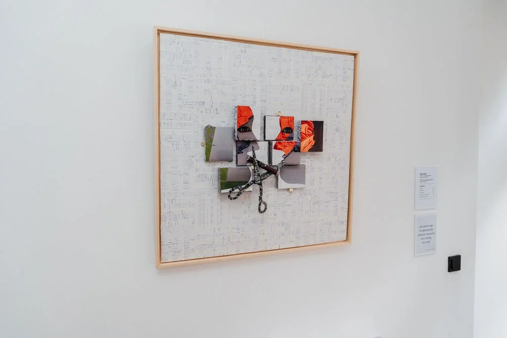 At the same time, the exhibition asked a broader question: what happens to the materials themselves? Plastics, metals, synthetic fibres and mineral compounds do not disappear when their emotional value fades. They persist — in landfills, in oceans, in bodies, and within ecosystems. The artwork labels show ingredients in the way we are used to seeing them on food products, but not usually on other products we acquire. What we produce and accumulate circulates back to us.